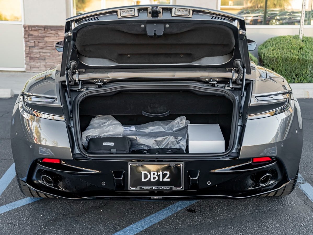 Engine and Performance: At the heart of the DB12 Volante is a formidable 4.0-liter Twin-Turbocharged V8 engine, delivering an exhilarating 671 horsepower and 590 lb-ft of torque. Mated to an 8-speed automatic transmission and driving the rear wheels, the DB12 Volante offers a thrilling and composed driving experience. With blistering acceleration and refined ride quality, it is every bit a driver's car, yet completely at home cruising open roads with the roof down.