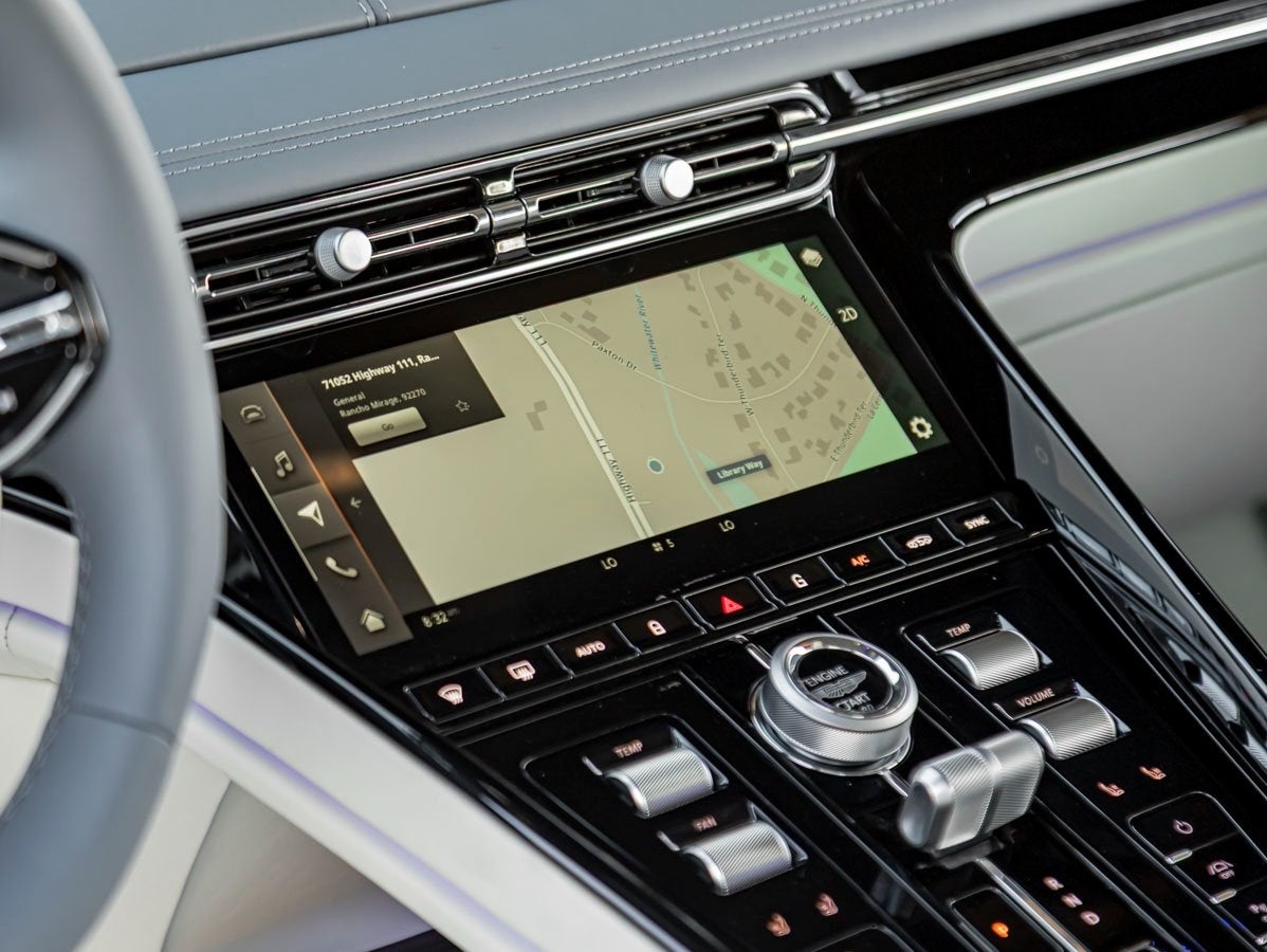 - Radio: 390-Watt Aston Martin Audio System -inc: 11 speakers, 10.25" TFT touch screen central display, Apple CarPlay, AM/FM/HD/DAB radio, wireless phone charging, Bluetooth® mobile phone connectivity w/audio streaming, natural voice control, satellite navigation system, SiriusXM satellite radio, 2 USB ports and 12v charging socket