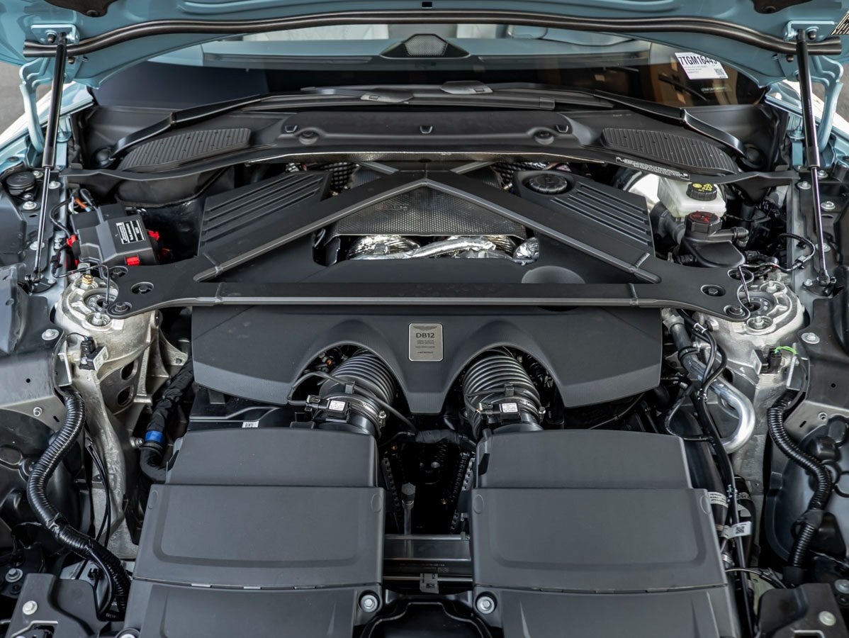 Engine and Performance: Powered by a fierce 4.0-liter Twin-Turbocharged V8, the DB12 Volante generates 671 horsepower and 590 lb-ft of torque. Paired with an 8-speed automatic transmission and rear-wheel drive, this Grand Tourer delivers precision handling and thrilling acceleration, all while maintaining top-tier ride comfort.