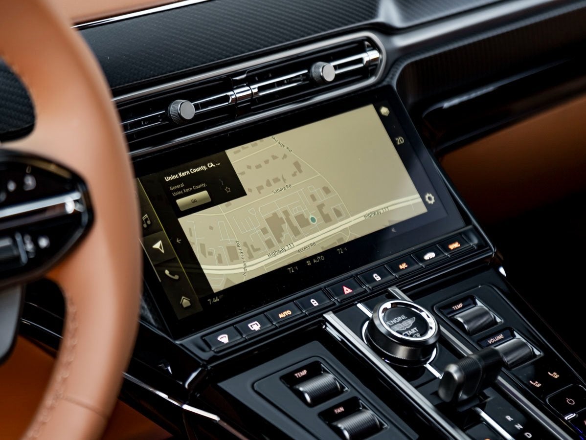 - Radio: Aston Martin AM/FM/HD/DAB Audio Infotainment -inc: , 10.25" TFT touch screen central display, Apple CarPlay Ultra, wired Android Auto, 390-watt 11 speakers, Bluetooth® mobile phone connectivity w/audio streaming, natural voice control, satellite navigation system, SiriusXM satellite radio and 2 USB ports