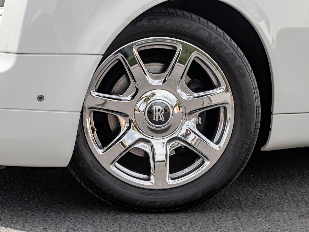 The Phantom Drophead Coupe commands attention with its stately presence and unmistakable silhouette. The English White finish accentuates the yacht-inspired design, while the signature teak deckingmeticulously crafted and polishedevokes the elegance of classic luxury boats. A colored grille surround adds a distinctive touch to the iconic Pantheon grille, while the 21 fully polished 7-spoke alloy wheels complete the vehicles poised and graceful stance.