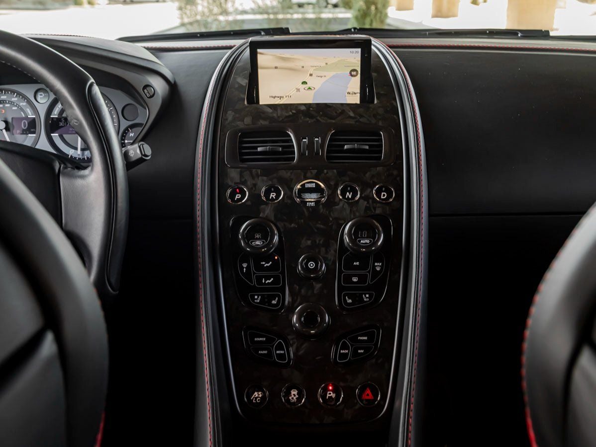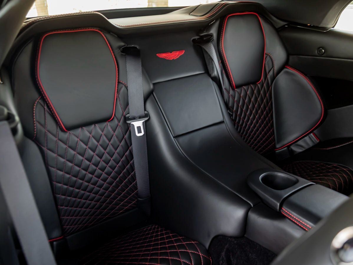 Inside, the cabin welcomes you with an atmosphere of handcrafted luxury and sporting sophistication. The Pure Black interior is beautifully appointed with Contrast Stitching, Contrast Carpet Binding, and elegant Filograph Quilting, reflecting Aston Martins renowned attention to detail. Alcantara Contemporary trim adds a modern, performance-inspired touch, while the Headrest Embroidery Aston Martin Wings serves as a subtle reminder of the marques heritage and prestige. Comfort and refinement are further enhanced by Ventilated Front Seats, while the Internal Shadow Pack lends a sleek and contemporary feel to the interior environment.