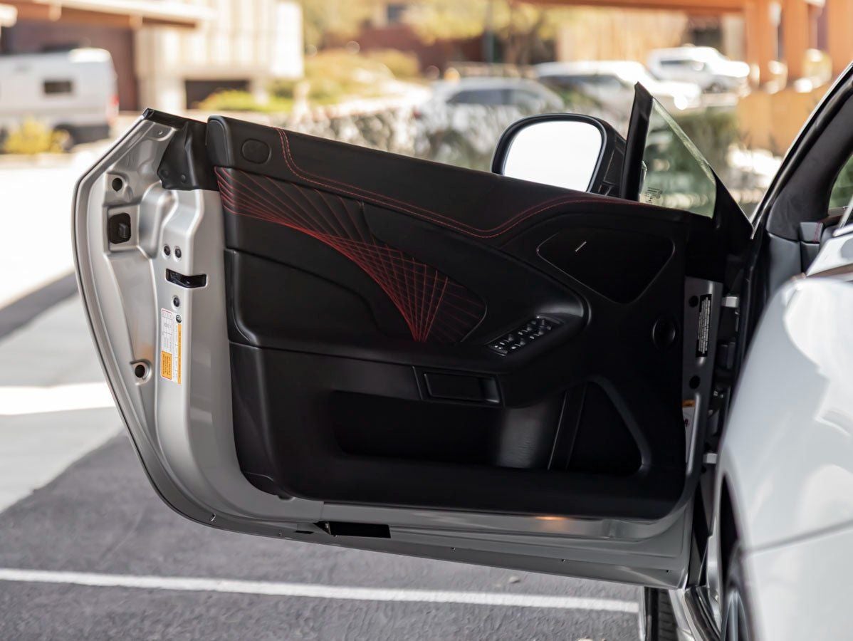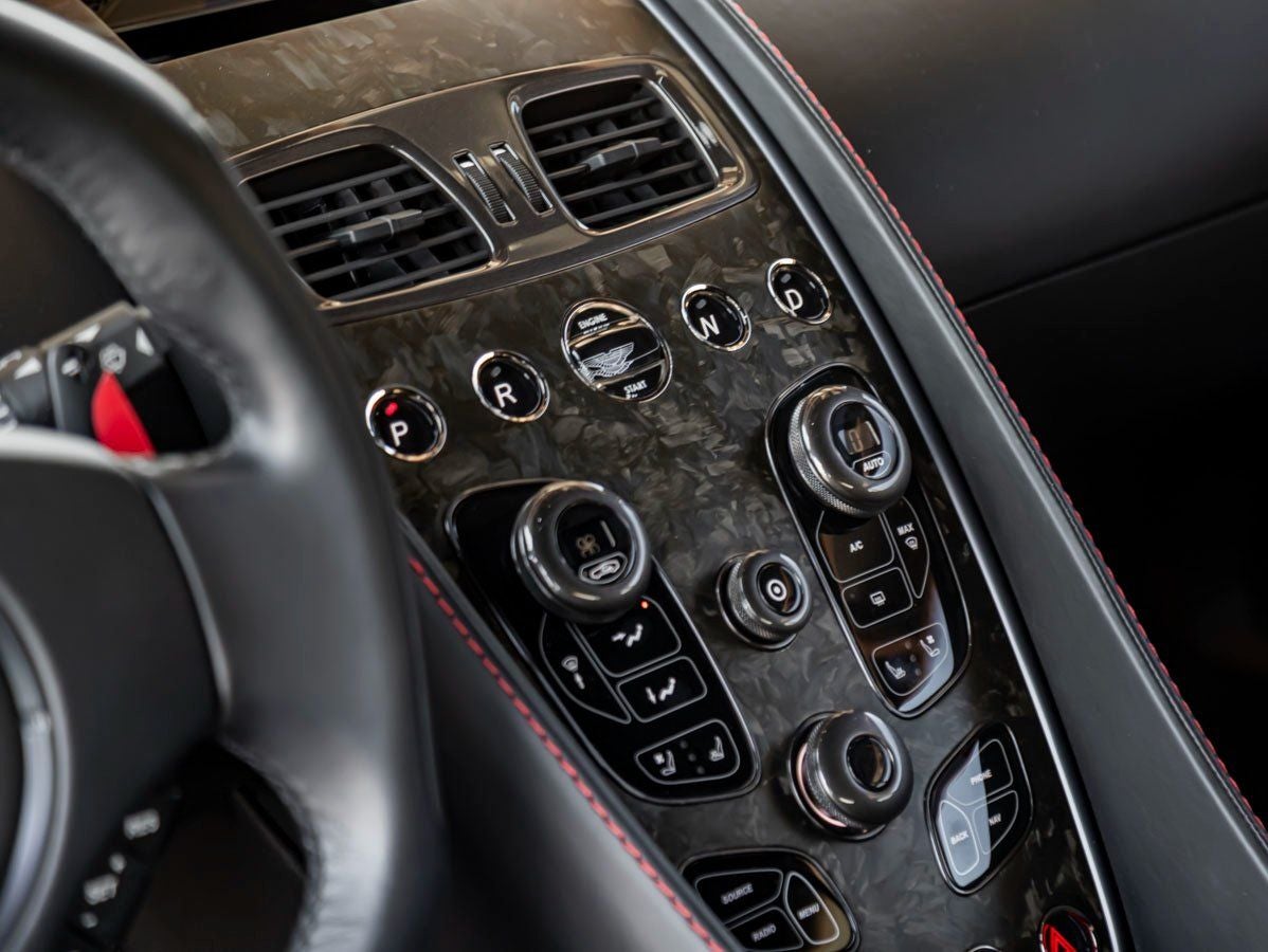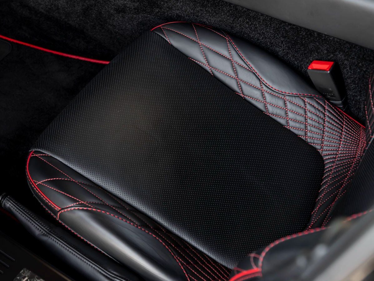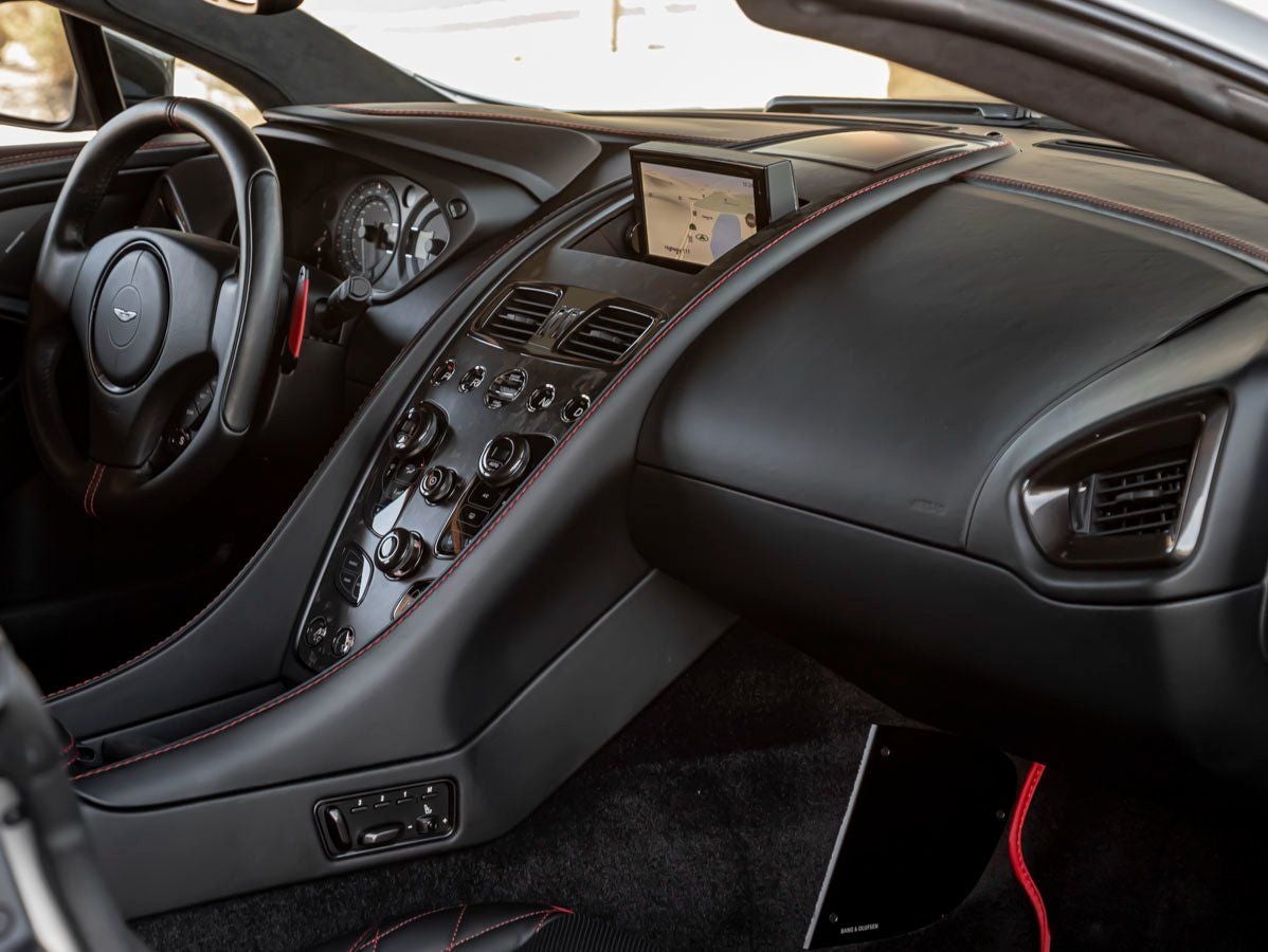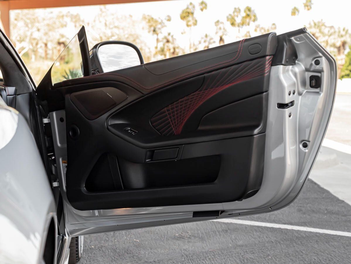The Vanquish S Volante makes an immediate impression with its striking silhouette, muscular stance, and beautifully refined details. Its bespoke Q Special Paint in Ferrari Argento Nurburing highlights every curve and contour, while the aggressive yet elegant styling is enhanced by the Exterior Carbon+ Pack, Exterior Shadow Pack, and Full Length Satin Chopped Carbon elements. The look is further amplified by Black Meshes, the distinctive Vanquish S Rear Badge, and 20" 5 Spoke Gloss Black Lightweight Wheels, all of which contribute to its dynamic and highly exclusive appearance. Completing the exterior presentation are eye-catching Red Brake Calipers and a Polished Aluminium Fuel Filler Cap, adding the perfect finishing touches to this extraordinary Aston Martin.