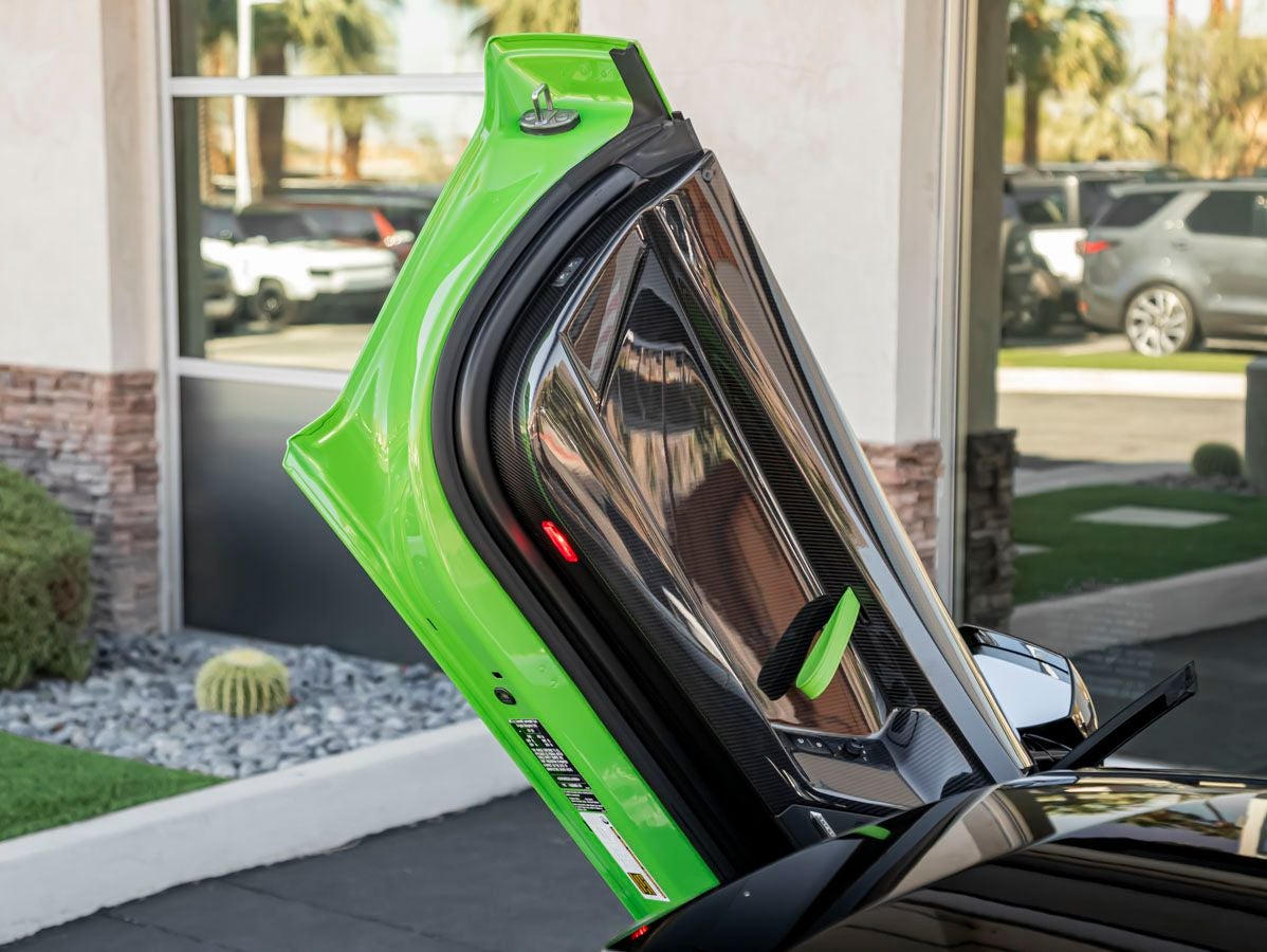 Lamborghini Rancho Mirage is proud to present an extraordinary Pre-Owned 2020 Lamborghini Aventador SVJ Roadster, an open-air masterpiece that represents the pinnacle of Lamborghini engineering, innovation, and unmistakable design. With just 3,838 miles, this remarkable supercar is finished in stunning Verde Mantis over Nero Cosmus, a dramatic specification that perfectly reflects the bold spirit of the Lamborghini marque.