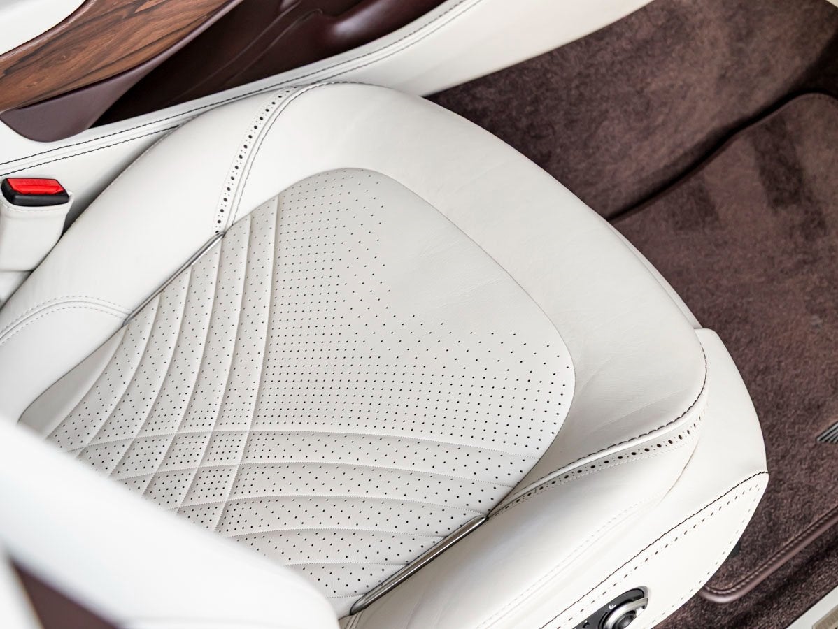Inside, the cabin is a sanctuary of luxury and craftsmanship. The Bitter Chocolate and Ivory contemporary leather interior is beautifully appointed with contrast stitching, delivering a rich and inviting atmosphere. Premium materials surround every occupant, from the leather headlining to the carefully selected contemporary carpet color, reflecting Aston Martins meticulous attention to detail. Extended wood veneer trim with Ziricotte inlays further elevates the interior, blending natural elegance with modern sophistication.