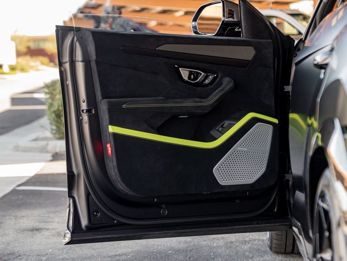 The Urus Performante commands immediate attention with its lower, wider, and more athletic stance. Finished in Nero Nemesis Matt Exterior Paint, its stealth-inspired presence is elevated by the Full Exterior Carbon Fiber Package, showcasing Lamborghinis racing DNA in every sculpted detail. A stunning Roof in Shiny Carbon Fiber adds dramatic contrast, while bold Shiny 23 Pelope Rims and Black Brake Calipers complete the performance-focused aesthetic. Privacy Glass Acoustic enhances both style and cabin refinement, creating an SUV that is as commanding as it is exclusive.