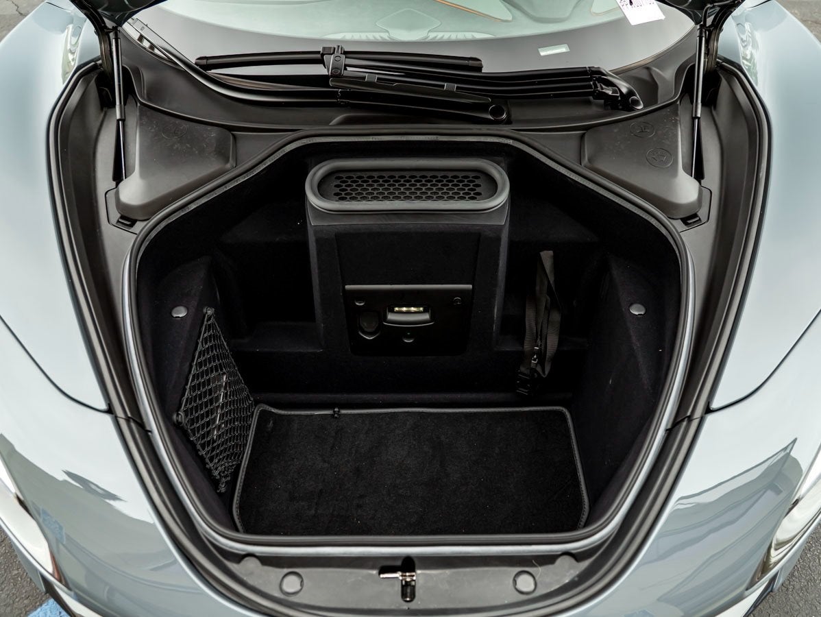 The 720S Spiders sculpted silhouette is a masterpiece of aerodynamics and artistry, engineered to slice through the air with precision and purpose. The bespoke exterior paint highlights every dramatic curve and functional air channel, while the Stealth Pack adds a refined yet aggressive edge. Performance-focused details such as McLaren Orange brake calipers and carbon fiber rear deck and engine covers underscore the cars motorsport-inspired character, delivering both visual impact and lightweight efficiency.