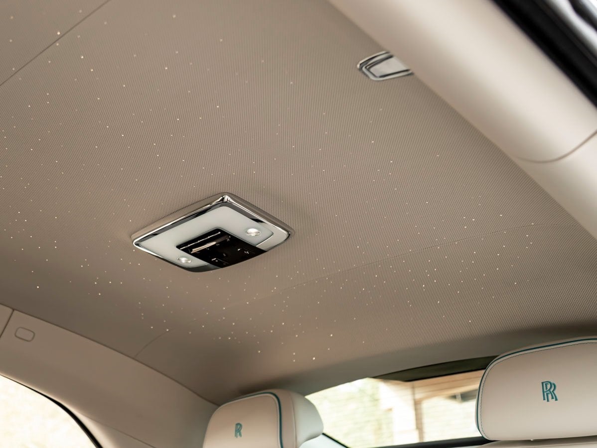 Step inside and experience an environment of unparalleled craftsmanship and tranquility. The Seashell interior is exquisitely tailored with Turchese contrast stitching, extended piping, and seat piping, complemented by the RR Monogram embroidered on all headrests.